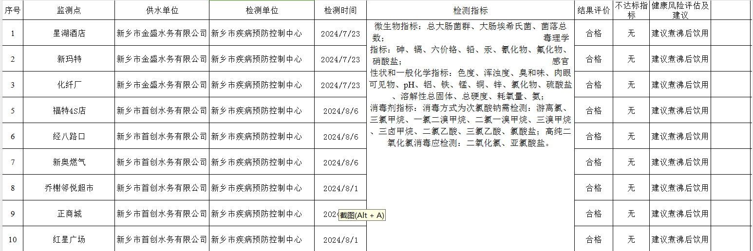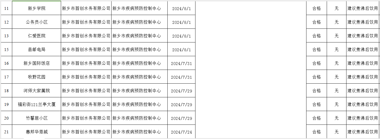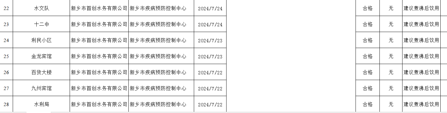 附表格 附件:新乡市2024年第三季度饮用水安全状况信息公开2024033