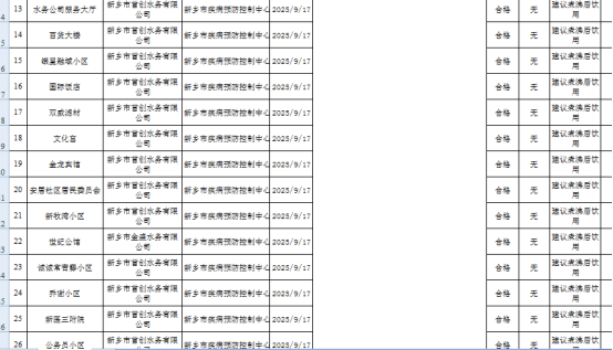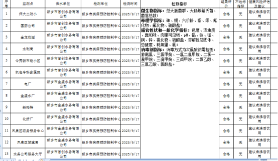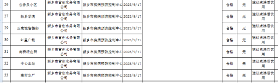 2025年第三季度新乡市城区生活饮用水水质检测公示